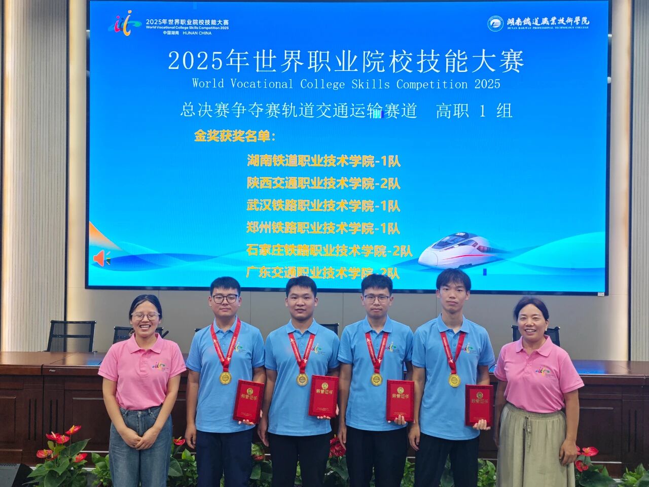 8月28日至31日,2025年世界職業院校技能大賽總決賽爭奪賽軌道交通運輸賽道(高職組)在湖南舉行。經過激烈比拼,石家莊鐵路職業技術學院軌道交通系兩支代表隊在眾多強勁對手中脫穎而出,分別斬獲金獎和銅獎